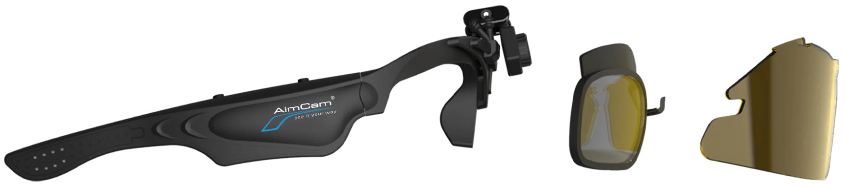 Three pairs of ANSI.Z87+ lenses are included with every AimCam Pro2i & Pro3K package:- Enhanced Vision Yellow, Crystal Clear & a Cool Grey Shades Pair.