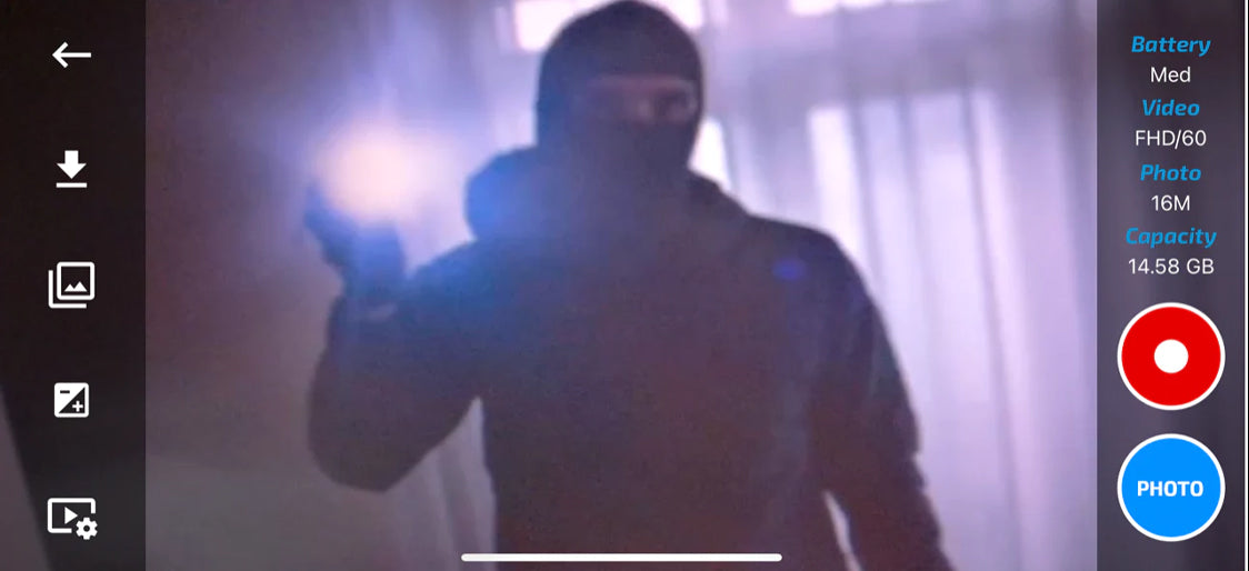 Select and program using the AimCam Pro App to switch the glasses to motion detection. Leave hidden like a Spy / Trail camera. The AimCam will detect movement and capture footage for your specified time period, log the time/date and then go back to standby covertly on the look out. They will even detect through a house window or a windshield of a vehicle!